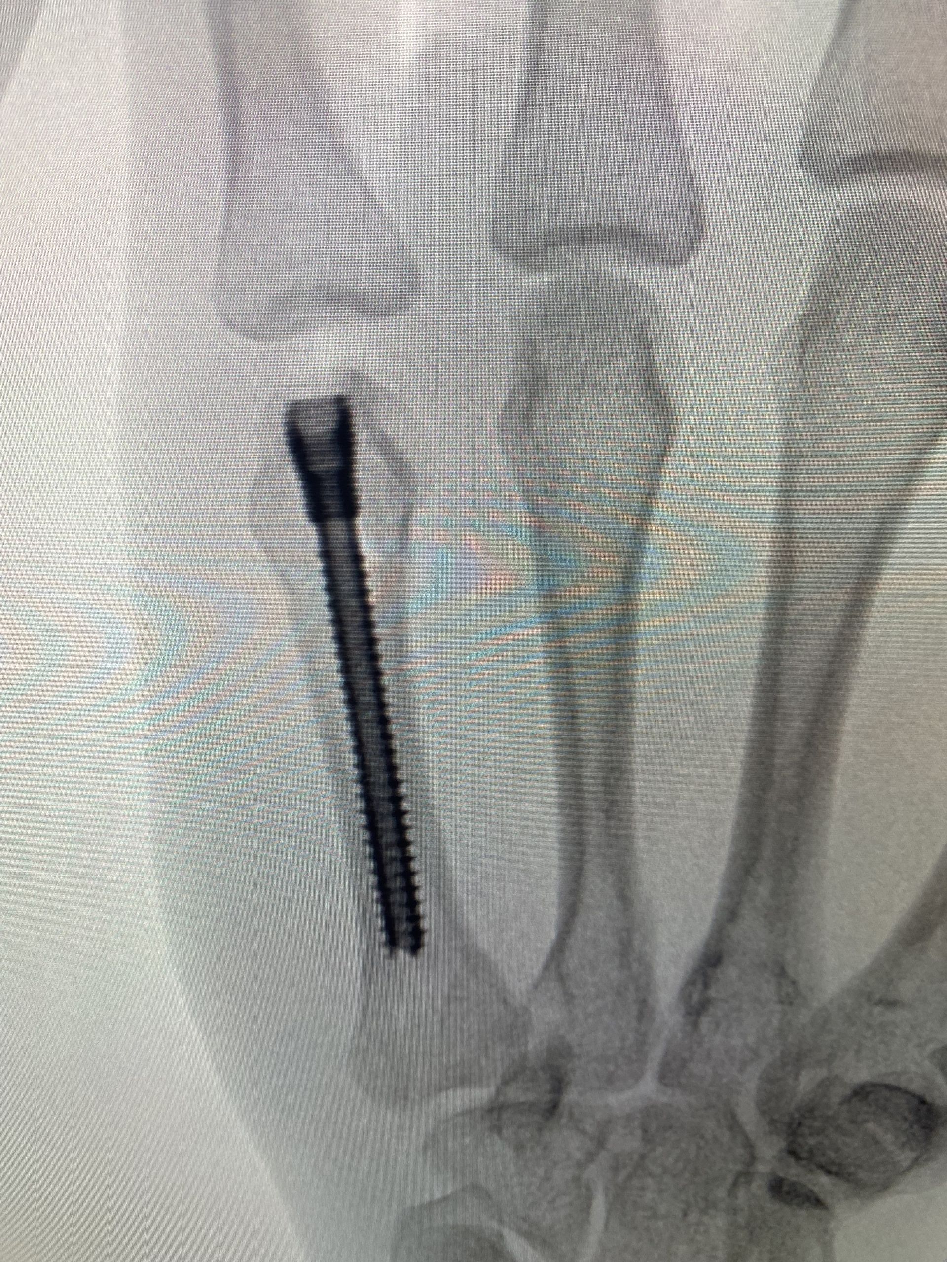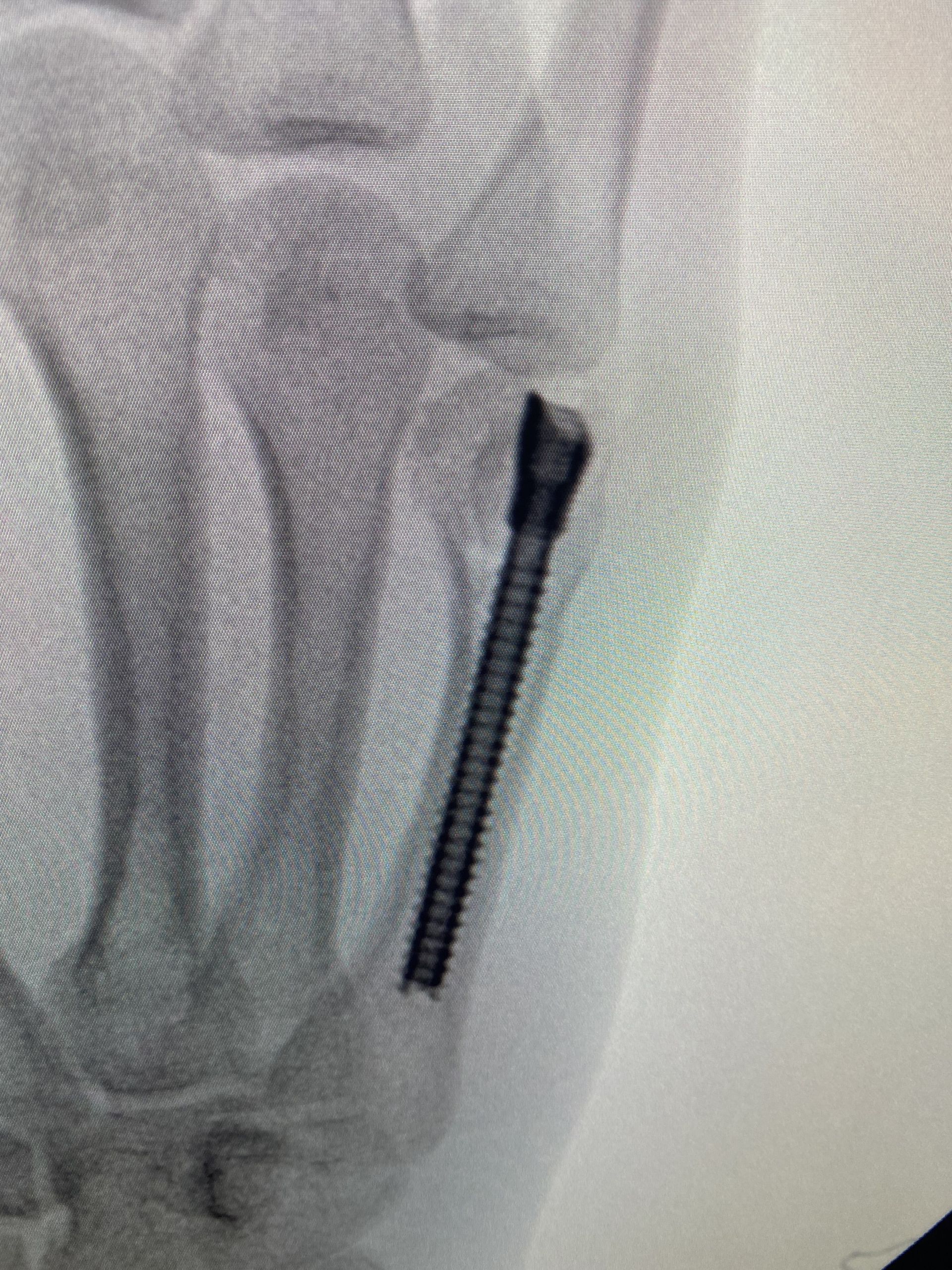 Em uma meta-análise realizada em 2019, Beck et al. avaliaram 169 pacientes e os resultados foram surpreendentes: 100% de união da fratura, 96% de recuperação de força de preensão palmar, 86° de flexão da articulação metacarpofalangeana e poucas complicações descritas. A crítica acerca de tal técnica cirúrgica é a violação articular por conta do acesso para introdução do parafuso. Mas a literatura não mostrou evidências de que esse ponto de introdução do parafuso traga malefícios ou prejuízos funcionais.