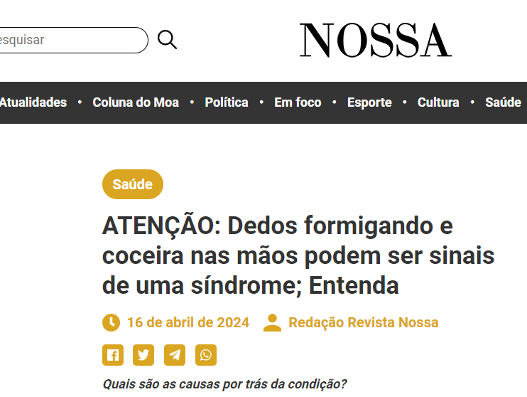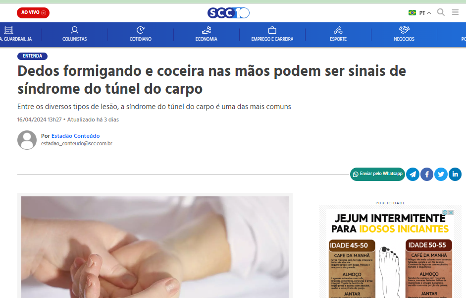 Dedos formigando e coceira nas mãos podem ser sinais de síndrome do túnel do carpo; entenda…