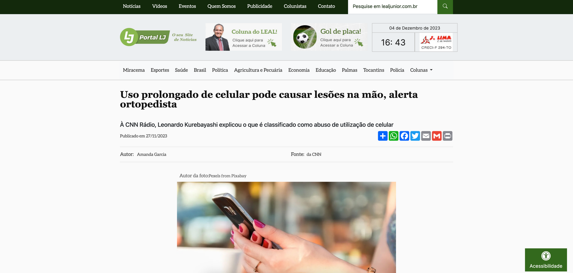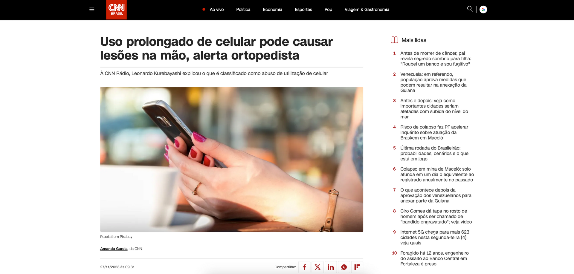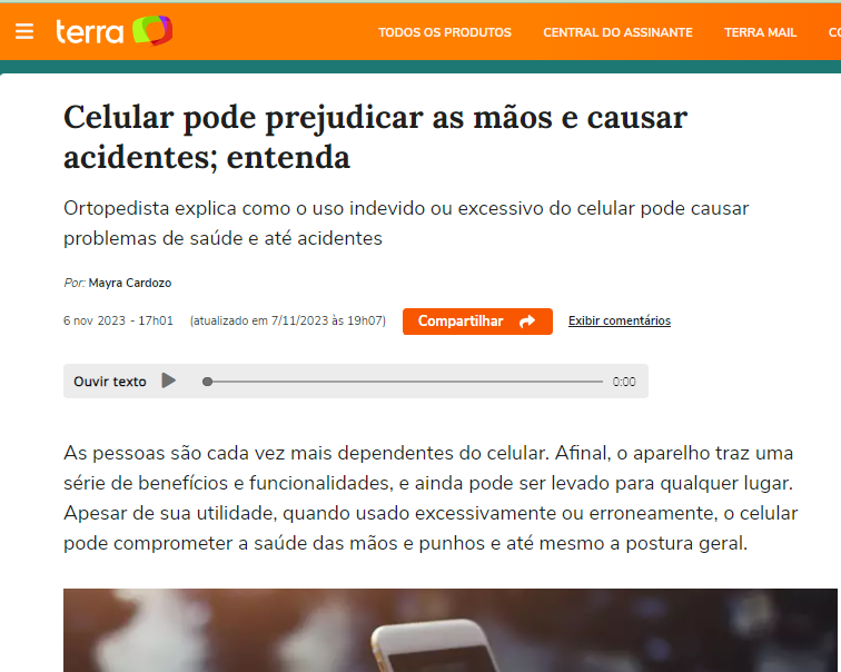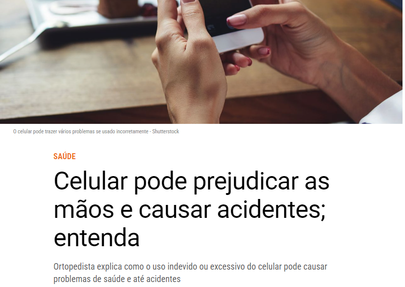 Leia na ÍntegraEspecialista afirma que uso excessivo de celular pode prejudicar a mãos e dedos