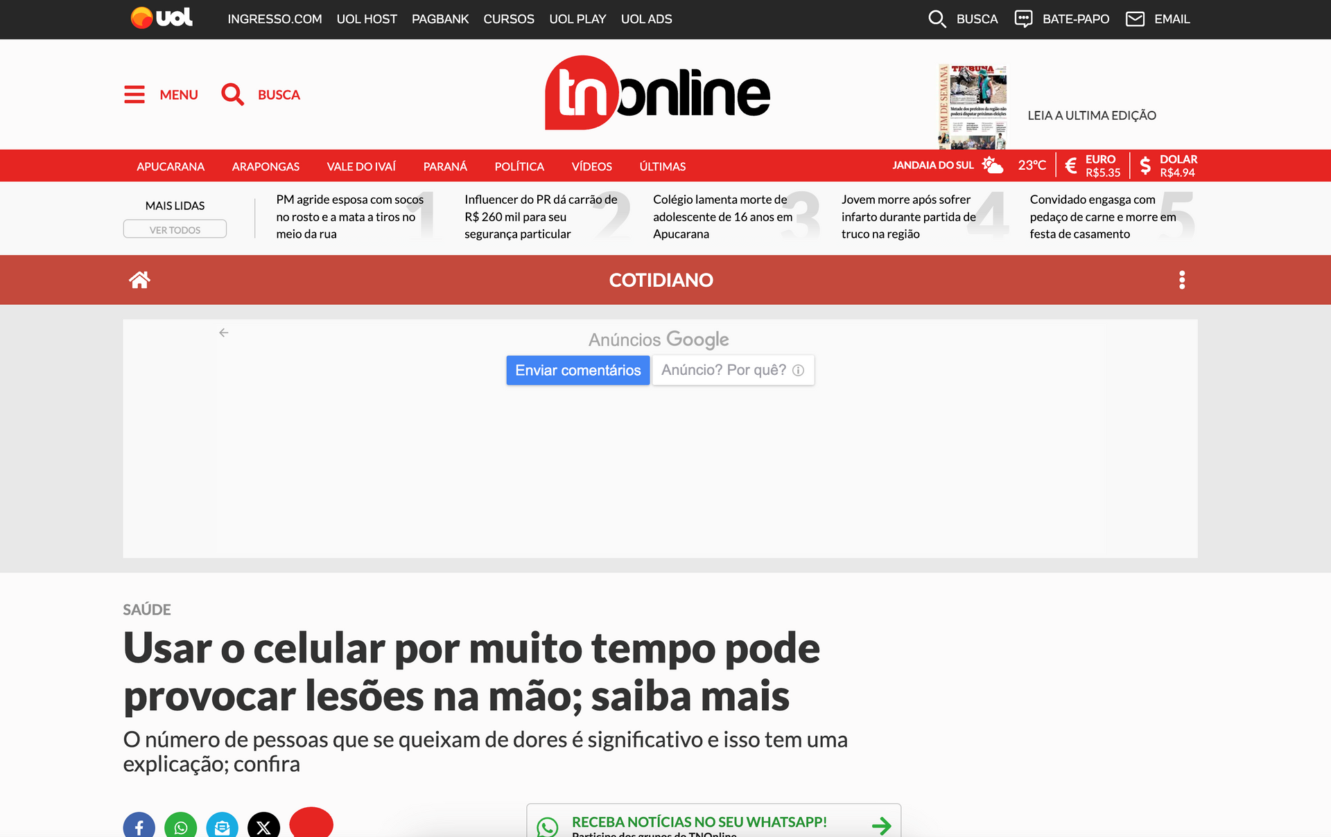 Uso excessivo de celulares está causando acidentes e prejudicando saúde das mãos