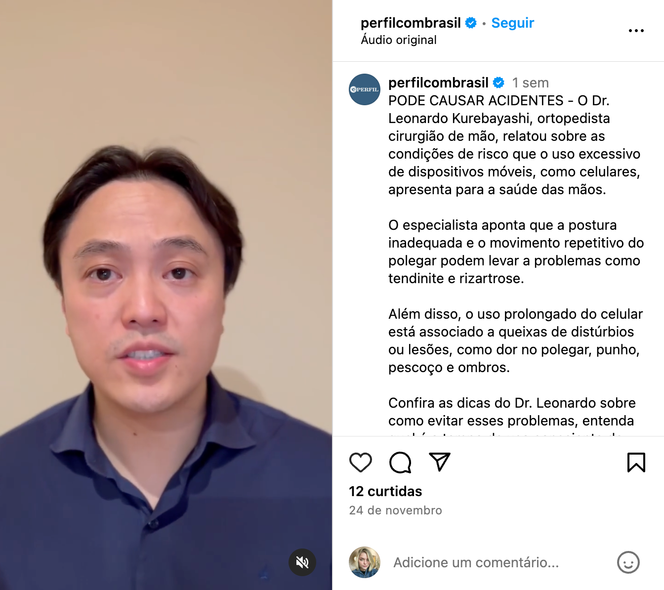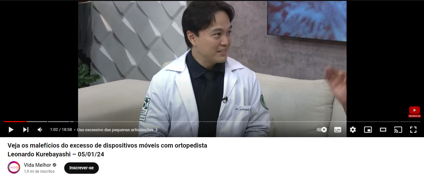 O Dr. Leonardo Kurebayashi, ortopedista cirurgião de mão, relatou sobre os riscos que o uso excessivo celulares, apresenta para a saúde das mãos.