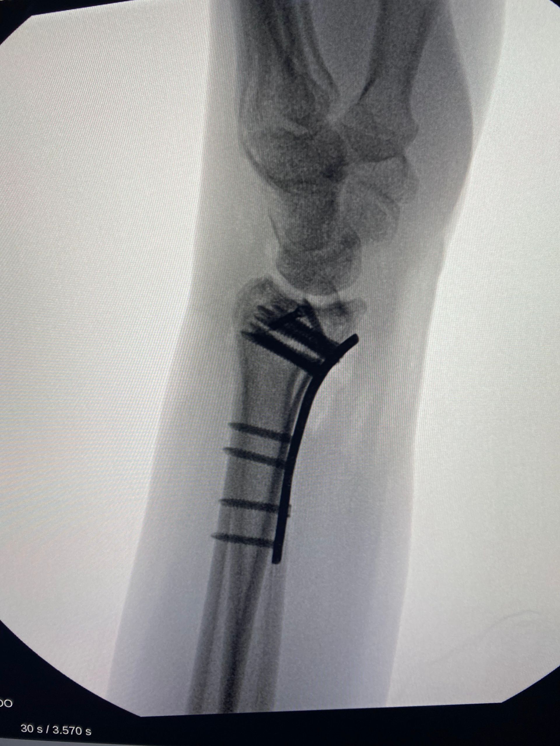 - Muitas vezes, mais de uma via cirúrgica será necessária, com exposição volar e dorsal, liberação do nervo mediano, utilização de enxerto ósseo devido a cominuição metafisária e combinação de diferentes técnicas cirúrgicas: fixador externo, interno ou fixação fragmento específico